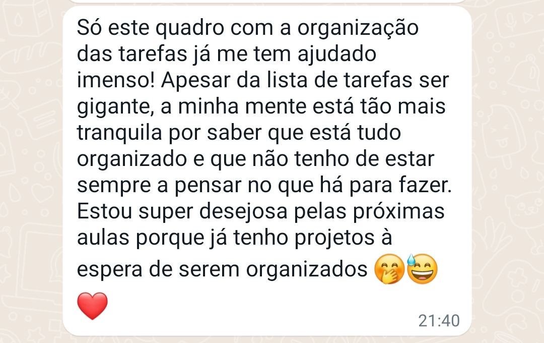 Organizar-te não é para teres mais horas. É para saires do caos diário que te sobrecarrega para começares a viver o teu dia com direção e intenção— sem sentires que precisas de escolher entre os teus objetivos e cuidar de ti.