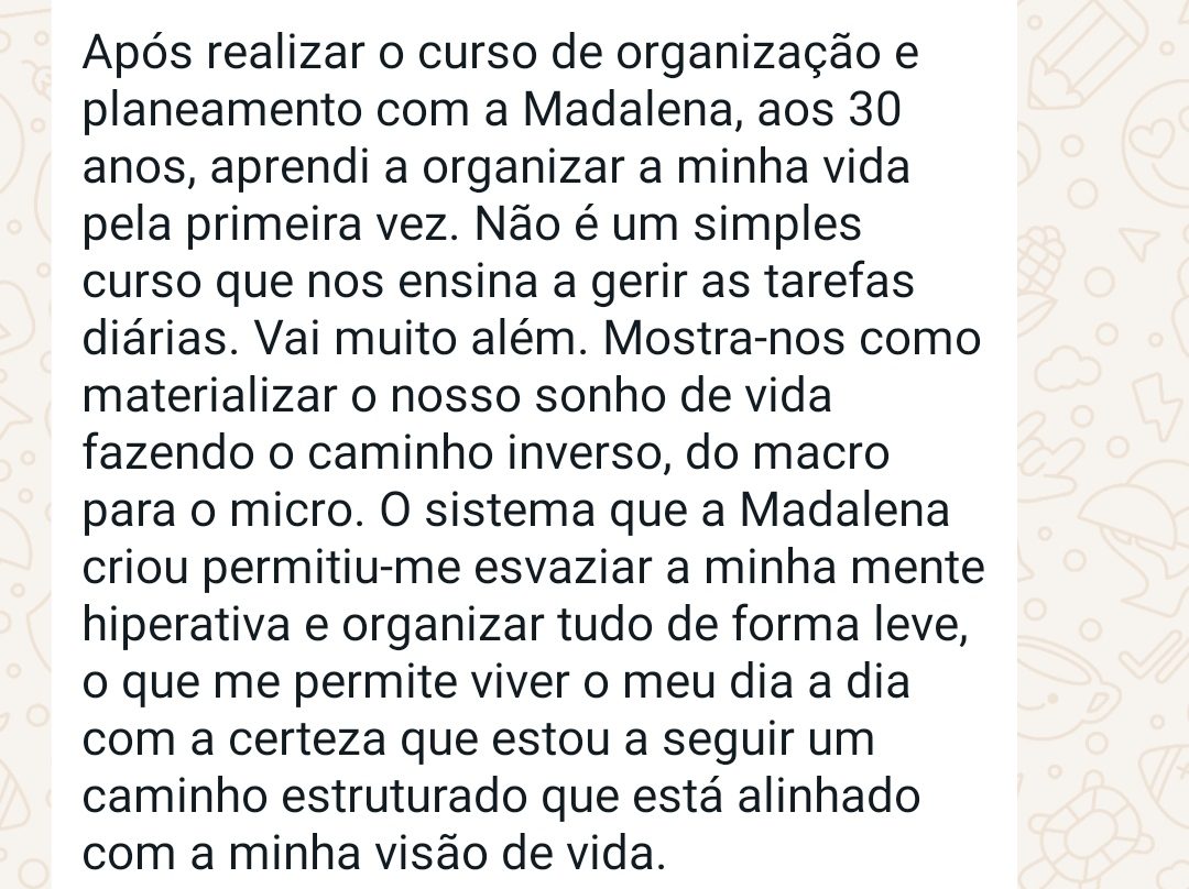 Ao longo da minha jornada, aprofundei estudos em desenvolvimento pessoal, gestão e saúde feminina, e foi dessa fusão que nasceu o meu método: uma forma de organização pensada para mulheres que desejam ser produtivas sem se afastar de si mesmas.